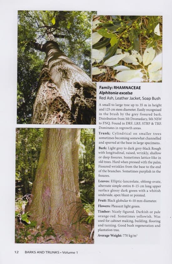 The photographs in the books will giver the reader a closer appreciation of the different bark types, colourations, textures, trunk shapes, and an overall understanding of old-growth rainforest trees.
